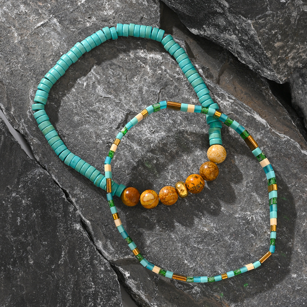 Natural semi-gemstone men's bracelet