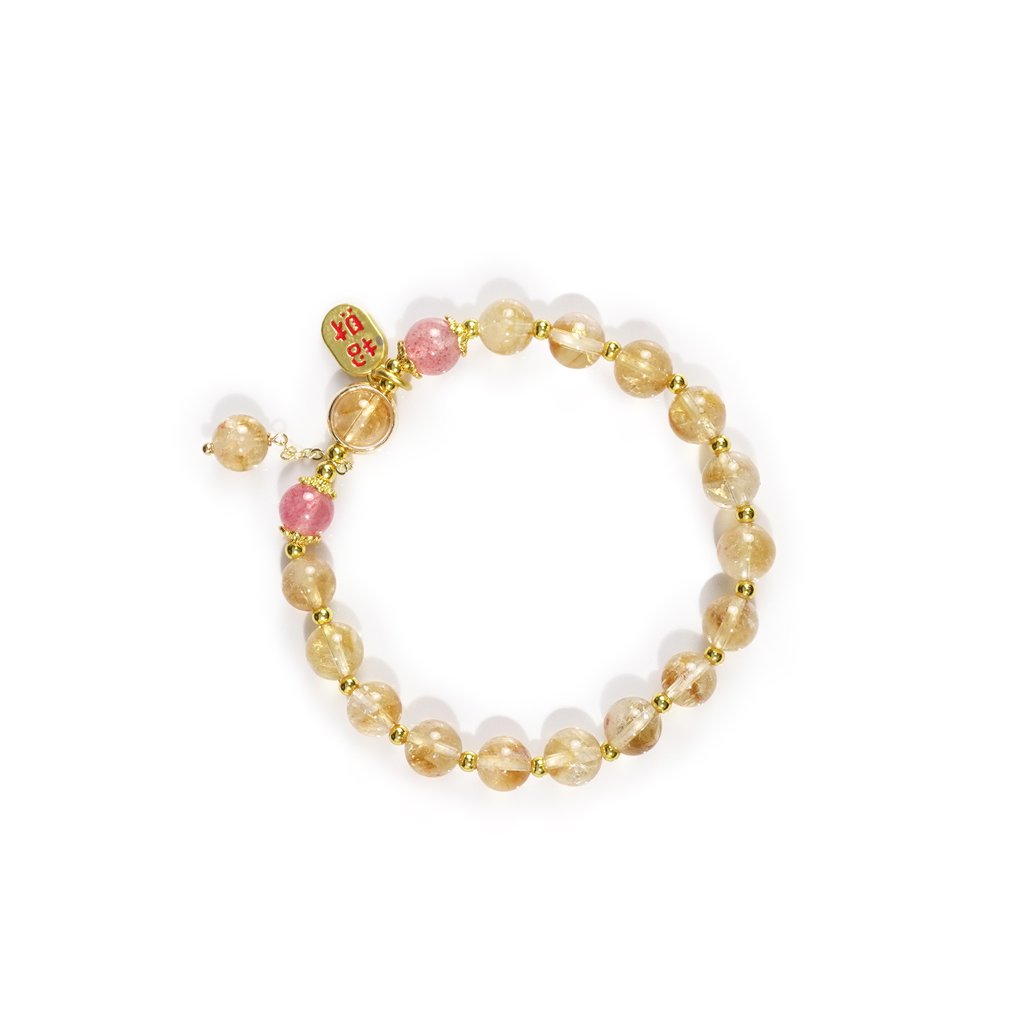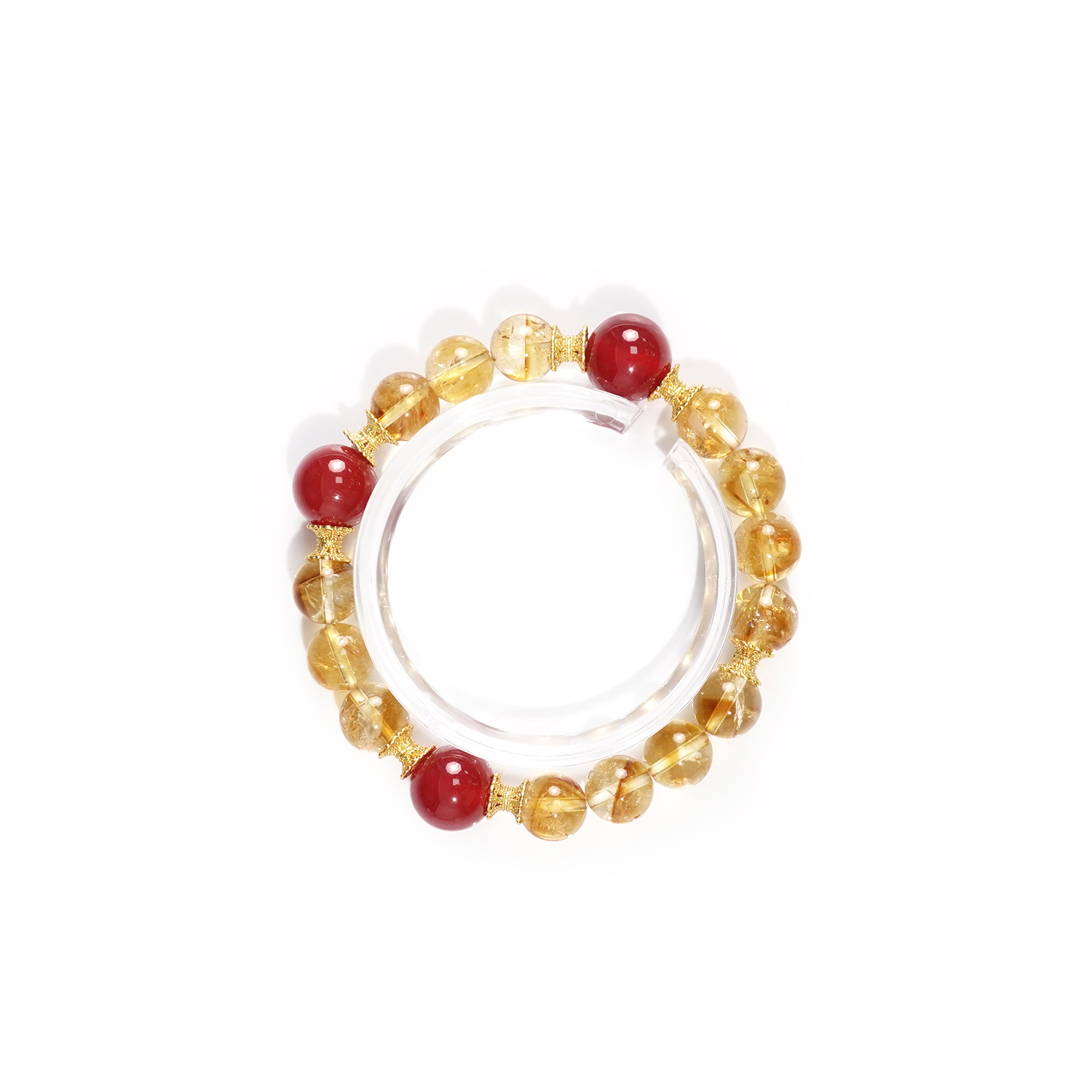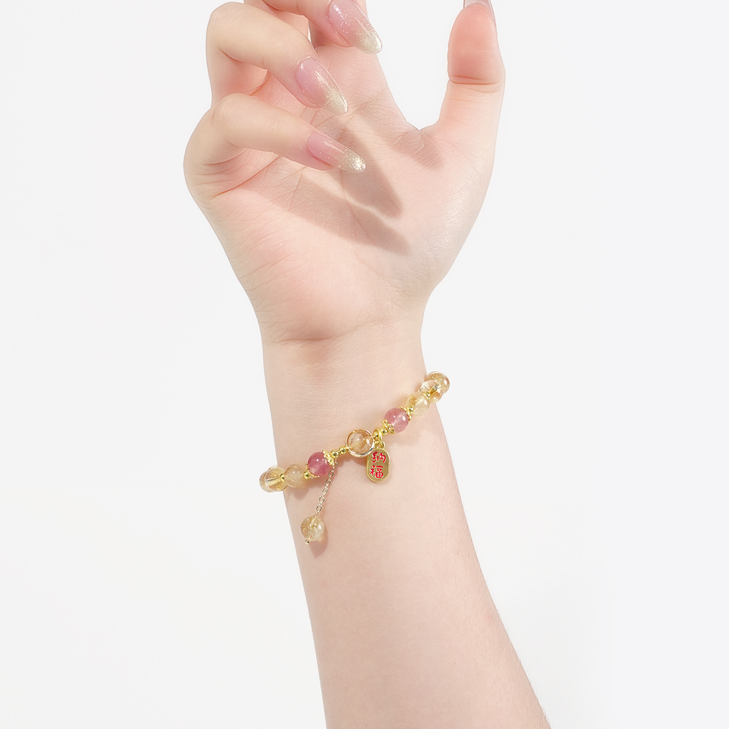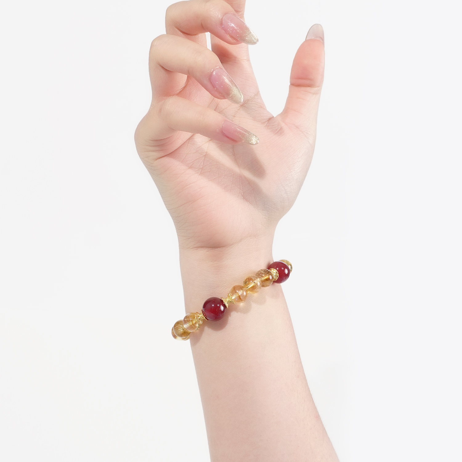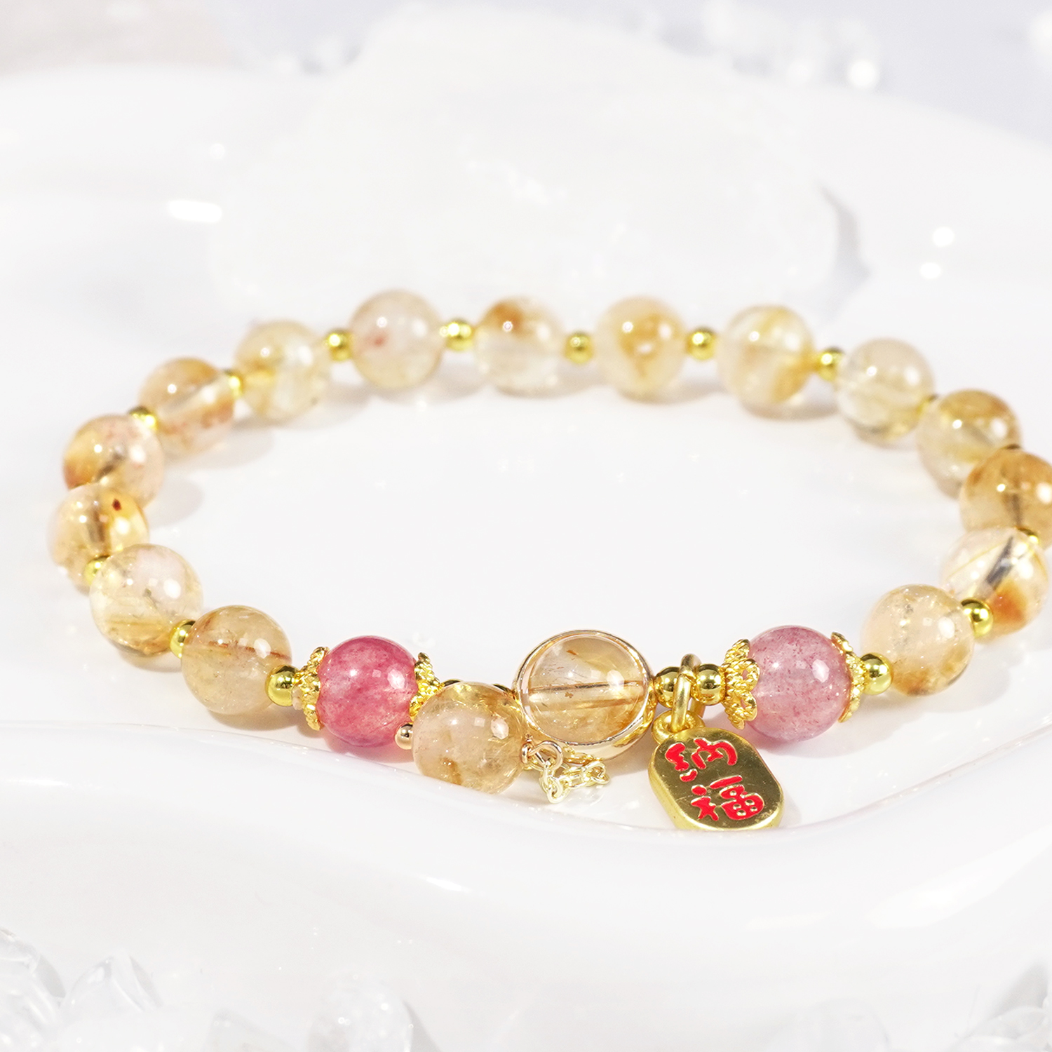 Pigeon blood red strawberry crystal + gold titanium crystal PI Xiu bracelet