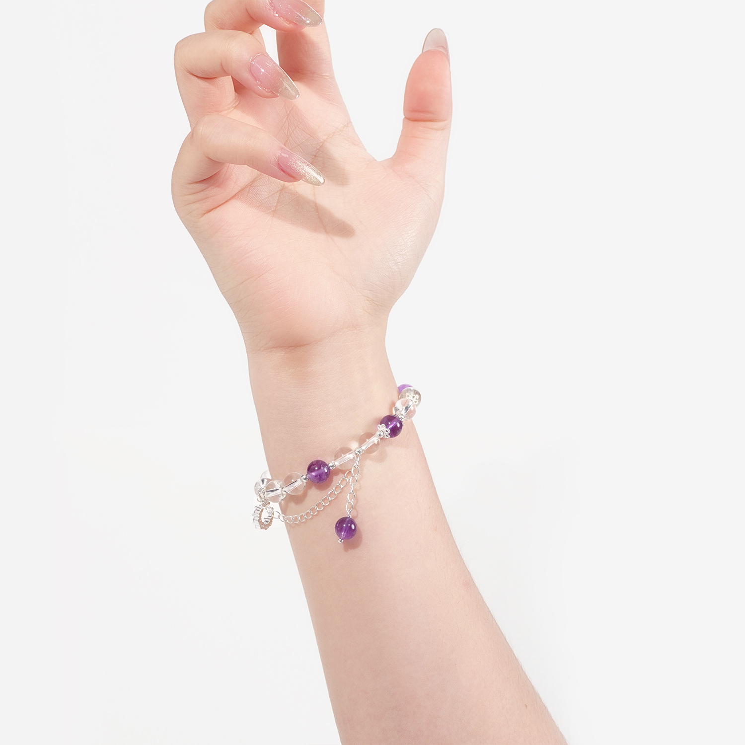 Grape stone + white Asai + white crystal + green Asai double-pointed bracelet